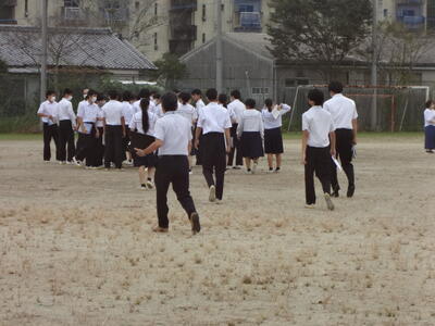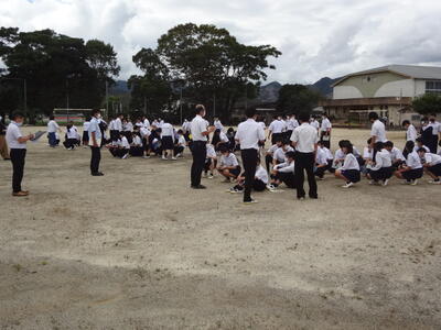 9月1日(金)に地震に関する避難訓練を行いました、一次避難をした後、校庭に集まり人員の確認を行いました。地震はいつどこでい起こるかわからないので、家庭でもどこに避難するかという約束をしておくことを確認しました。
