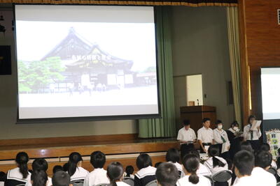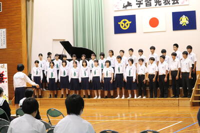 10月8日(日)に学習発表会を行いました。保護者の皆様や学校評議員の皆様に参観していただき、日頃の学習の成果を見ていただきました。総合的な学習の時間の発表、合唱コンクール、展示等があり、生徒たちが学んできたことを発表す場となりました。