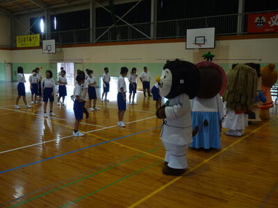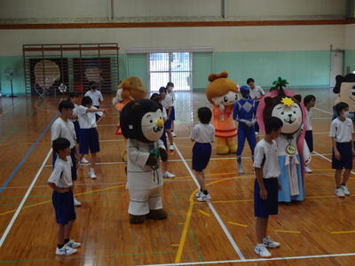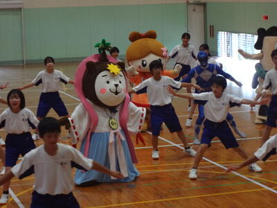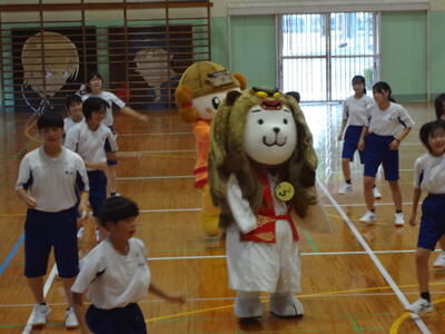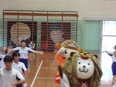 11月9日(木)に妻高校情報ビジネスフロンティア科の佐伯さんが中心となって穂北中学校の1年生とみやざき犬「ひい」「むう」「かあ」君3体と、西都市のご当地キャラクター5体の皆さんが参加して「コフンでコーフン体操」の収録を体育館でおこないました。終始、楽しい雰囲気の中一生懸命体操に取り組んでいました。