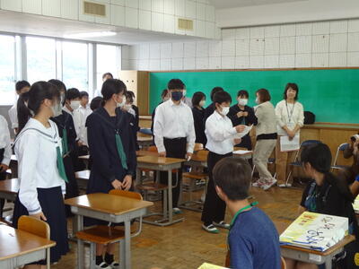 11月6日(月)に台湾の秋穂教育実験学校の生徒10名と本校の1年生が交流を行いました。交流会では学校紹介や漢字クイズ、合唱などを行いました。給食も一緒に食べながらお互いの国のことについて交流することができました。