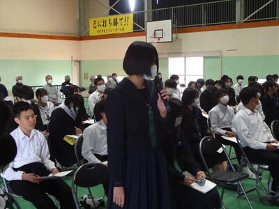 9月20日(水)に西都・児湯地区秋季体育大会及び水泳県大会の激励式を行いました。新チームになった各部のキャプテンが試合に臨む意気込みを発表してくれました。9月22日(金)に水泳県大会、西都・児湯地区の秋季体育大会は9月30日(土)から各会場で始まります。健闘を祈ります!