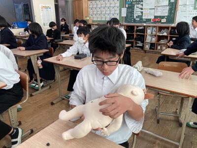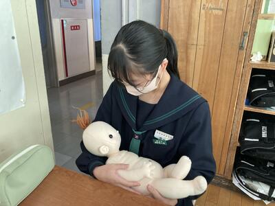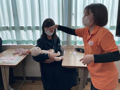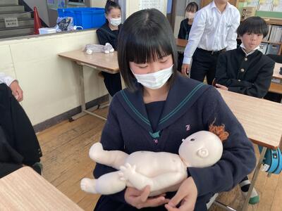 12月7日(木)に1年生は講師にか母ちゃっ子くらぶの日髙遥香さんをお迎えし、「生命尊重、思春期の特徴(第二次成長)、いらいら・もやもやストレス対処法」について学習しました。実際に赤ちゃんの人形をだっこしたり、プライベートゾーンについても学んだりしながら学びを深めていきました。