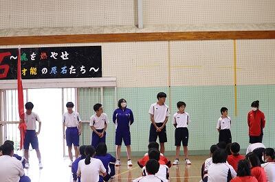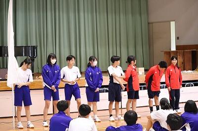 4月11日(金)の5・6校時に生徒会オリエンテーションが行われました。中学校の特徴である生徒会活動と委員会活動についての説明を行った後に、部活動紹介がありました。野球部、女子ソフトテニス部、サッカー部、女子バレー部の部活動紹介とボランティア活動を行ってくれているフリースタッフの紹介がありました。