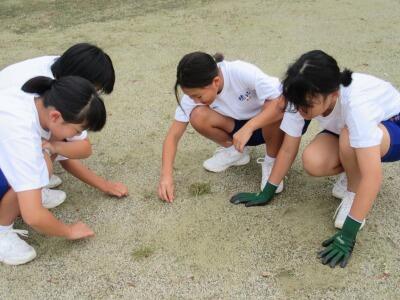 体育大会を1週間後に控えているため、運動場の草抜きを中心に行いました絵文字:晴れ
