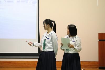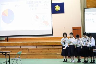 3年生は大テーマ:挑戦し、発信し、貢献するを設定し、1年間の前半は、「Future We Want」と題し、地域貢献プロジェクトに取り組みました。自分たちが住んでいる穂北を、西都市に対して自分たちができる貢献活動について探究し、実践した内容を発表しました。中間発表会では、実践途中だった活動も、実践してみてさらに発展した活動になっており、3年間で学んだ、発表の工夫も見られ、見ごたえのある発表になりました。