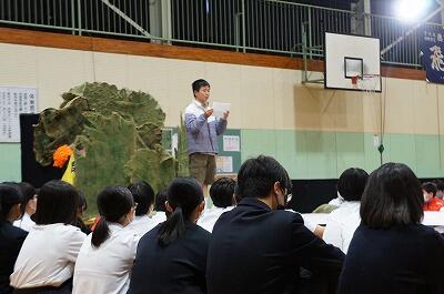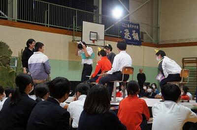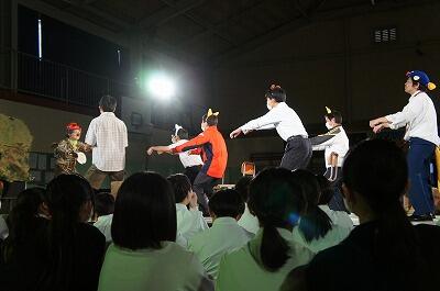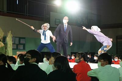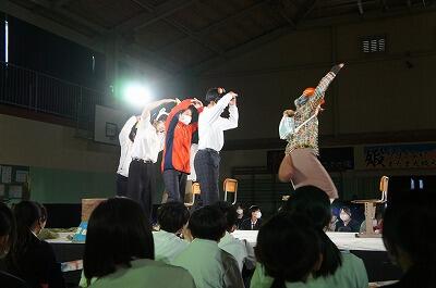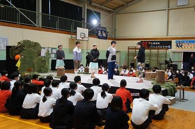 11月28日(金)に鑑賞教室を行いました。今回は都城の劇団こふく劇場に来ていただきました。生徒も参加する劇に生徒たちは感動し、楽しい時間を過ごさせていただきました。