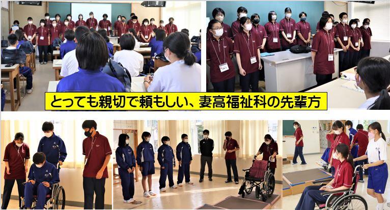 11月10日の5・6校時を利用し、妻高校の福祉科を訪問して体験学習を行わせていただきました。1年生・下半期のさいと学で学ぶ「キャリアみらいゼミ」の学習の一環です。一学期に石井十次の学習で学んだ「福祉の精神が、実際の仕事にどう生かされていくのか?」「福祉の仕事の意義は何か?」といった問いをもって生徒たちは妻高校を訪問しました。