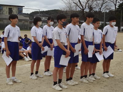 12月14日(木)に西都市立穂北中学校ロードレース大会を行いました!女子は2Km、男子は3kmの距離を走りました。これまで、体育の授業で行ってきたトレーニングの成果を発揮して完走を目指して頑張りました。
