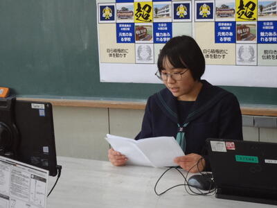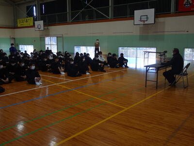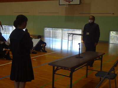 1月9日(火)に第3学期始業式を行いました。始業式の前に西都市計算力コンクール満点賞の表彰を行いました。始業式の初めには「能登半島地震」でお亡くなりになった方々へ向けて1分間の黙とうを行いました。次に各学年の代表と生徒会代表が3学期の抱負を述べてくれました。学年のまとめを行う3学期です。しっかり取り組んでいきましょう。