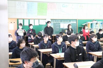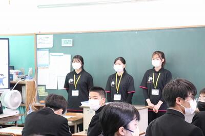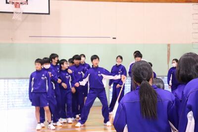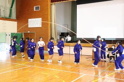 県立一般入試が終わり、少しほっとした3年生の皆さんを在校生が送るために、送別行事を行いました。大繩大会やクイズ大会で交流を深めました。お世話になった先生方からのビデオメッセージに3年生は見入っていました。