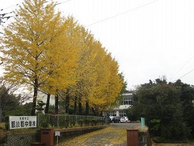 学校正門のイチョウ並木(秋の風景)