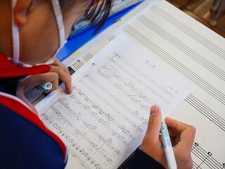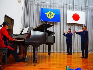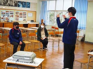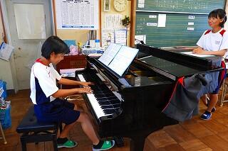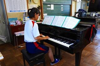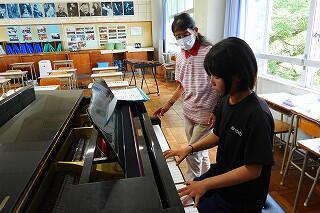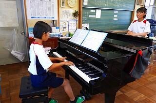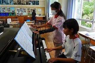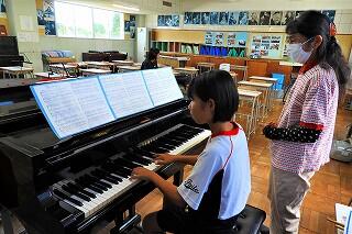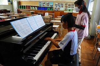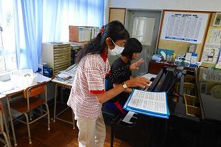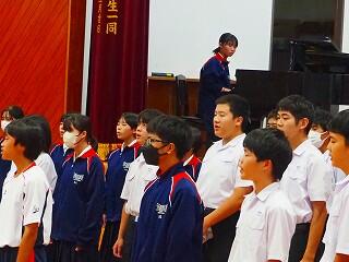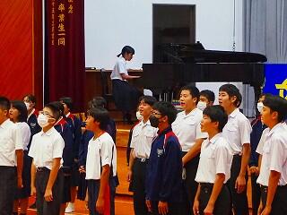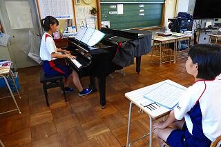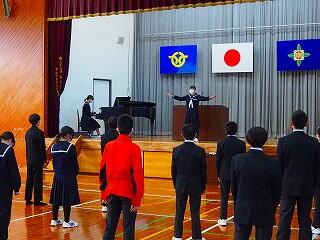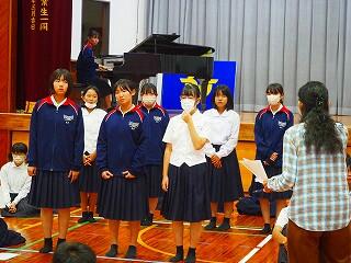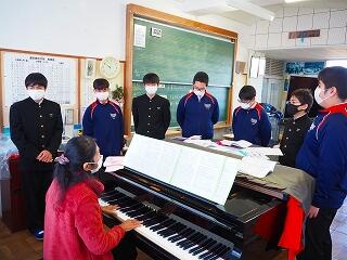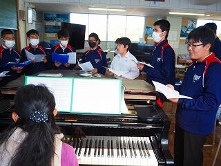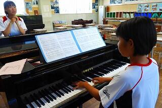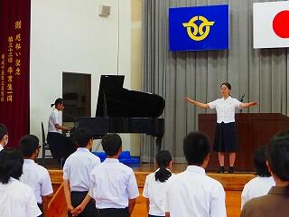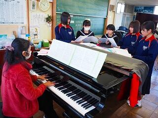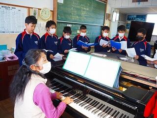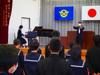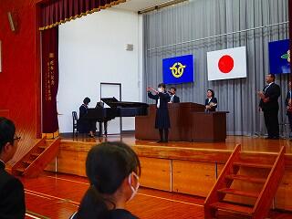 指揮は音楽の先生、ピアノ伴奏は2年生です。