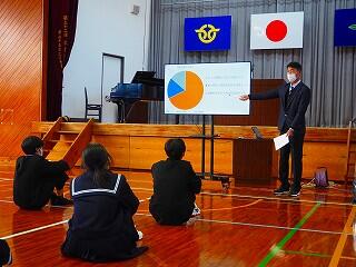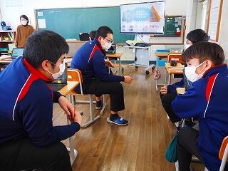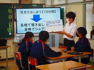 最後は発表して全体共有。意見、理由づけ、根拠を示すことで、説得力のある発表になりました。