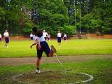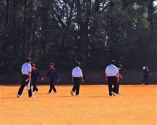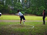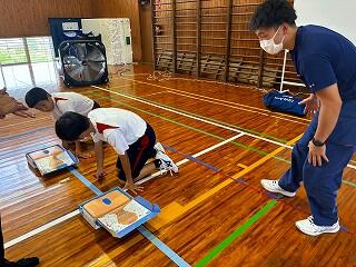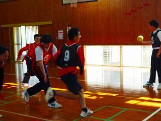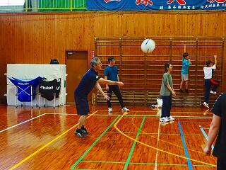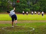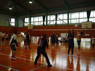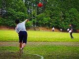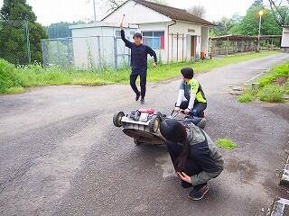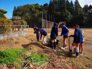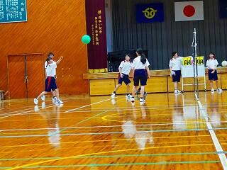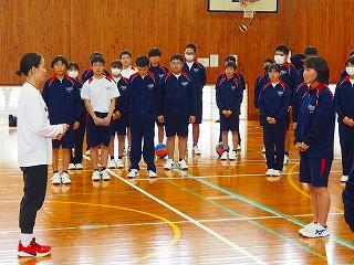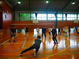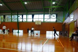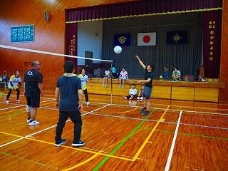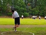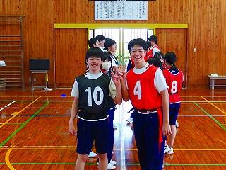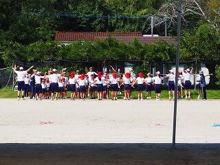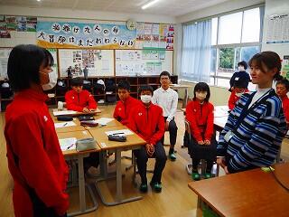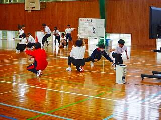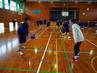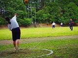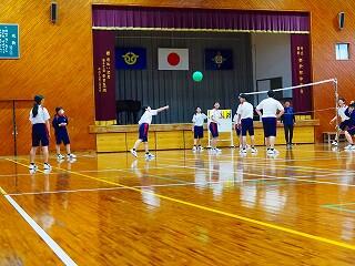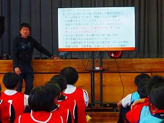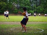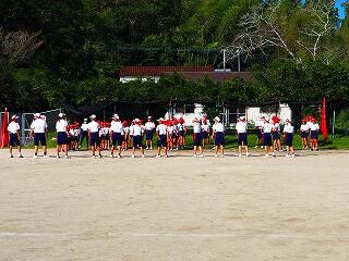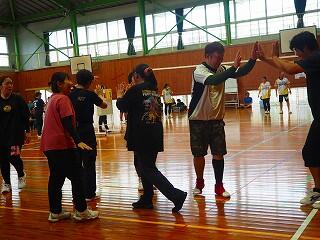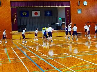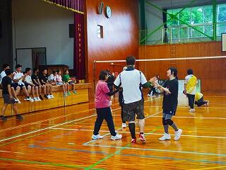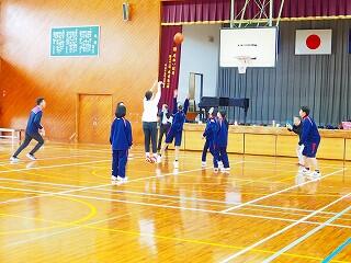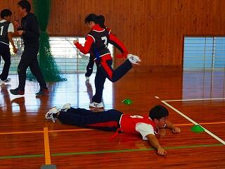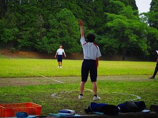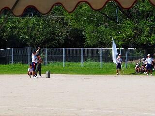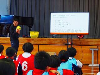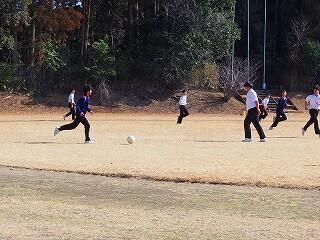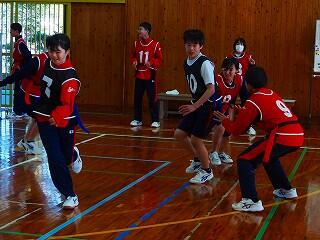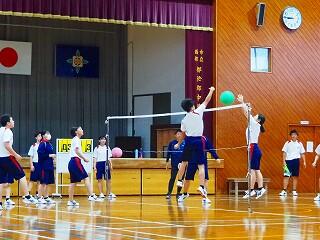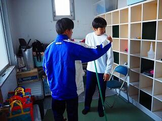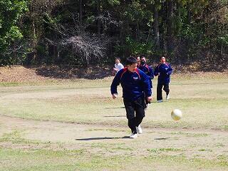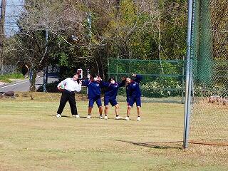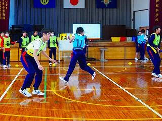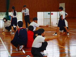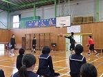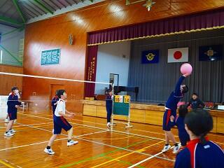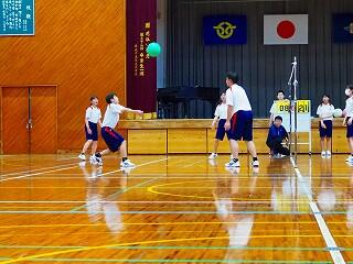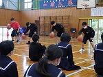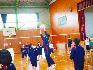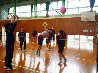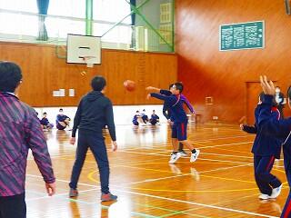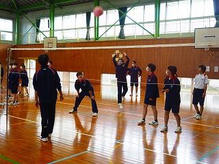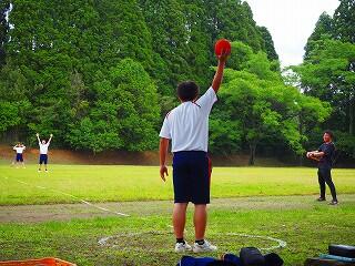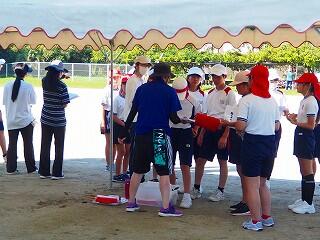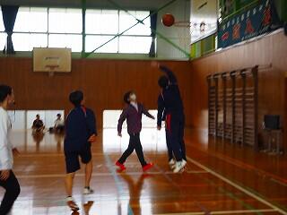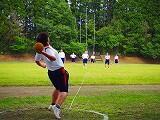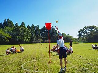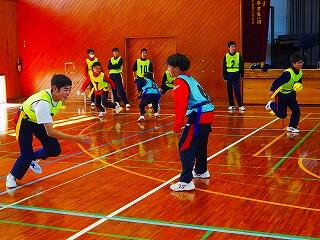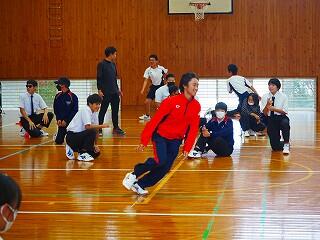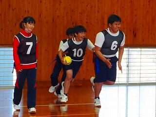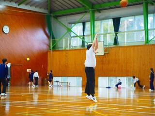 休みの日に、たまたま運動場に遊びに来ていた卒業生と3年生。