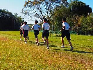 10分間走、終わりました。「疲れたー!」と聞こえてきました。それだけ一生懸命走った証拠ですね。