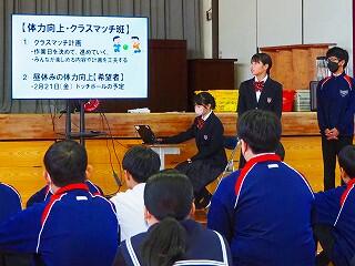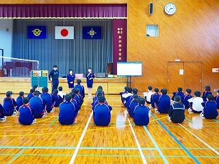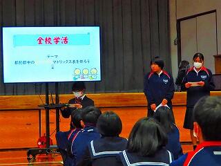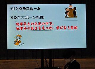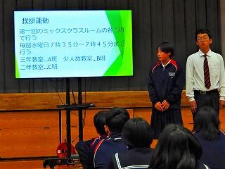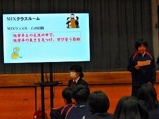 生徒会役員計画・運営の、縦割り合同朝の会「MIXクラスルーム」は、都於郡中ならではの取り組みの一つです。