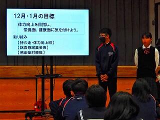 【今日の目標】「3校合同駅伝ロードレース大会に向けて体調管理をし、寒さに負けないようにしよう!」