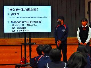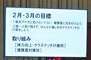 【今日の目標】「手洗いうがいをしてインフルエンザに気を付けて、全校体育では一生懸命走ろう!」