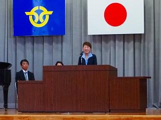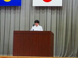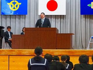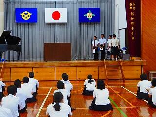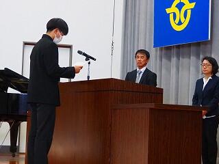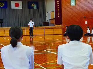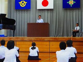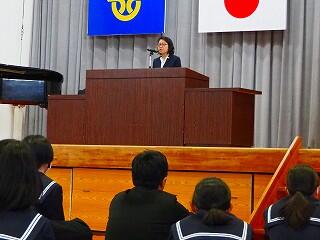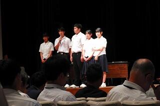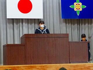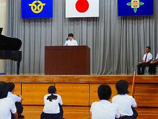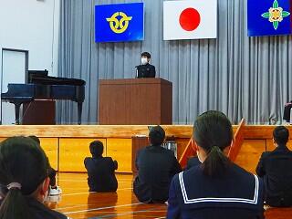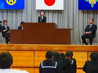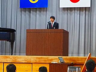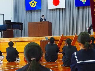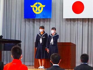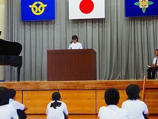 生徒会長のゆっくりと落ち着いた歓迎のことばでした。