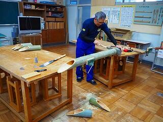 文字の部分を彫るパターンと、文字の周りを彫るパターンとあるようす。それぞれ自分でデザインして、カッコいいネームプレートが出来上がる様です。集中して取り組んでいました。