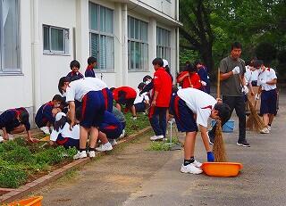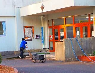 それぞれの担当場所を、無言で一生懸命清掃に取り組みましょう。」