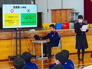 生徒指導担当の先生が作られた動画を各学級で視聴し、