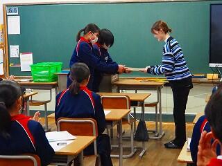 3年生は、小学校6年間、中学校3年間、合わせて9年間の感謝の気持ちをお伝えしたく『感謝状』を作成し代表2人が読んでお渡ししました。