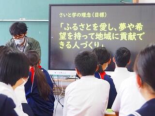 【ねらい】西都市の姉妹都市である台湾・羅東鎮の中学生との交流を通して、生徒の国際理解を深め、英語学習への意欲を高める。