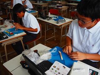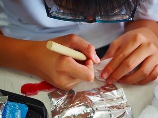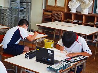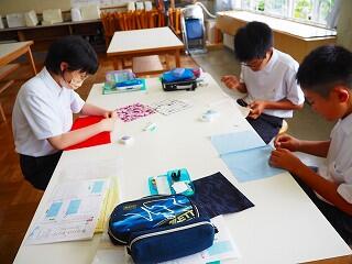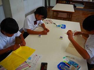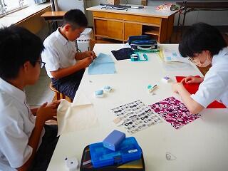 1年生の美術では「ネームプレートを作ろう」を黙々と作業中。