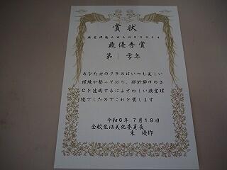 「お疲れさまでした!」おちボラ終了後に、全校生活美化委員長から渡されていたものは「おちボラ ONE チャレ」シールボランティア参加の証です