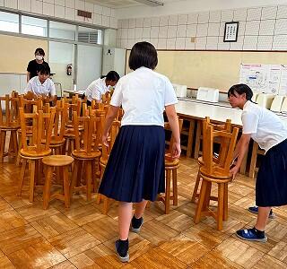 シート敷き、イス並べ、清掃、教室装飾・・・