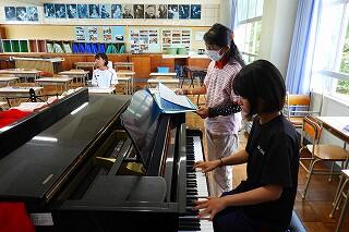 指揮は音楽の先生、ピアノ伴奏は2年生です。