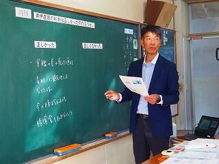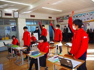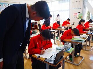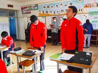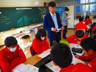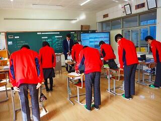 「今日はたくさん参加してもらって、ありがとうございました。楽しい思い出の一つになってくれたら嬉しく思います。3年生は都於郡中の最後の卒業生になります。そして1,2年生も最後の都於郡中生です。閉校まで残りわずかとなりました。閉校までの限られた日々を大切に過ごして、みんなで充実させていきましょう。」