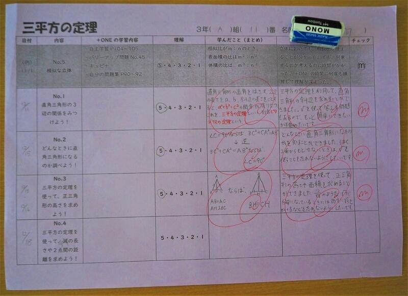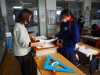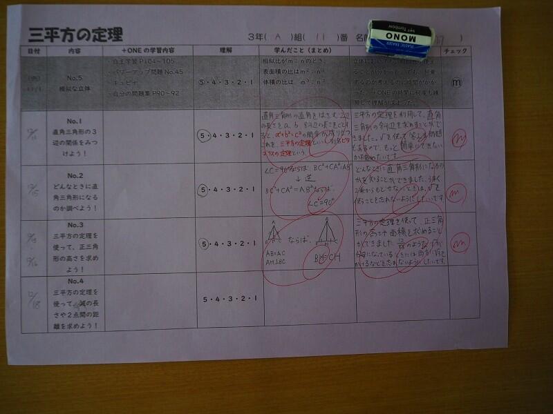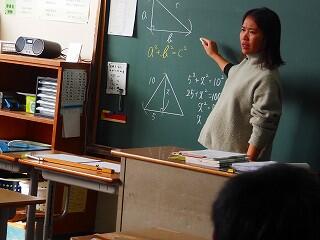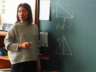 「最近学習した『三平方の定理』を使って、様々な問題にチャレンジする中で、積極的に先生や友達に質問をしたり、取り組むべき課題が終わったら、自ら【+ONE】の課題を見つけて取り組む姿が大変すばらしいなと感じています。 そんな皆さんに、もっと数学が好き!面白い!と思ってもらえるように、私も頑張ります!」