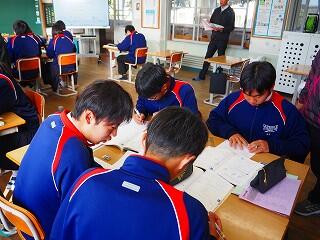 上新田中の体育科の先生が朝早くから来校され、学校の様子や生徒の皆さんの学習の様子などを参観されました。
