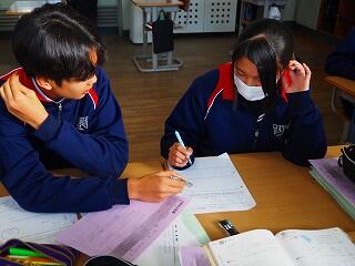生徒会役員の皆さんが、送別行事に向けての準備等をしていました。計画、準備等々、毎日のように話し合いや打ち合わせを重ねています。ありがたいです