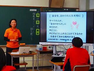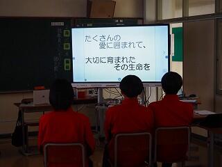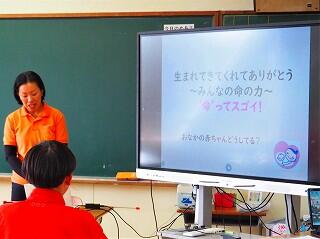 毎年、都於郡中では、2年生の3学期の性に関する教育を立志式後の時期に「命の尊さ」についての学習で計画しています。本年度も、宮崎助産師の会の【か母ちゃっ子くらぶ】様に来ていただきました。