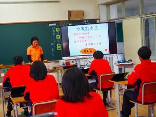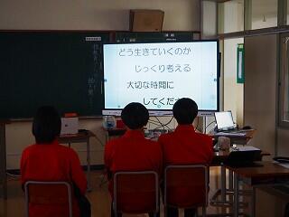 最後に学級担任の先生のまとめの話「先だっての立志式で、講演でヤマザキマリさんの『出し惜しみなく人間を生きる』のお話であったように、いただいた命をしっかり思いっきり自分の人間力で生きていくことを大事にしていきましょう!」
