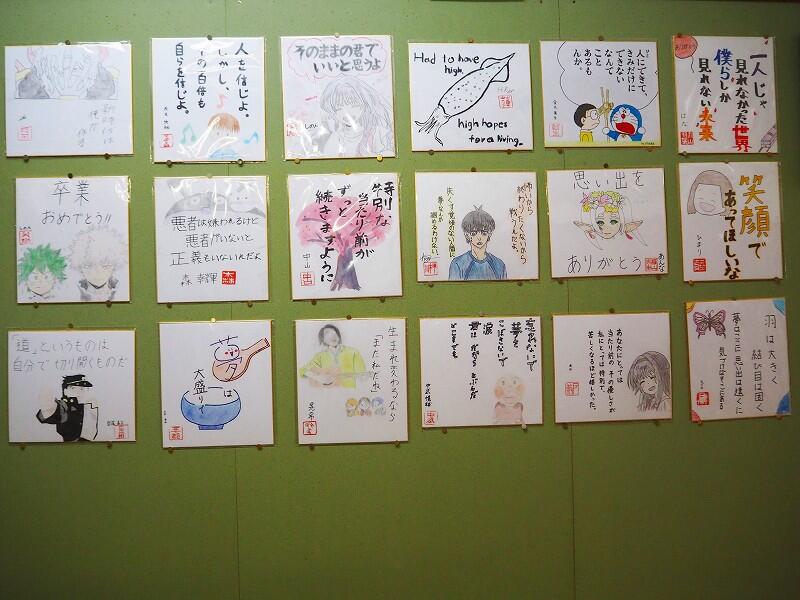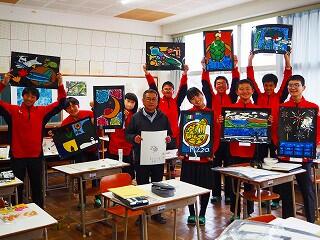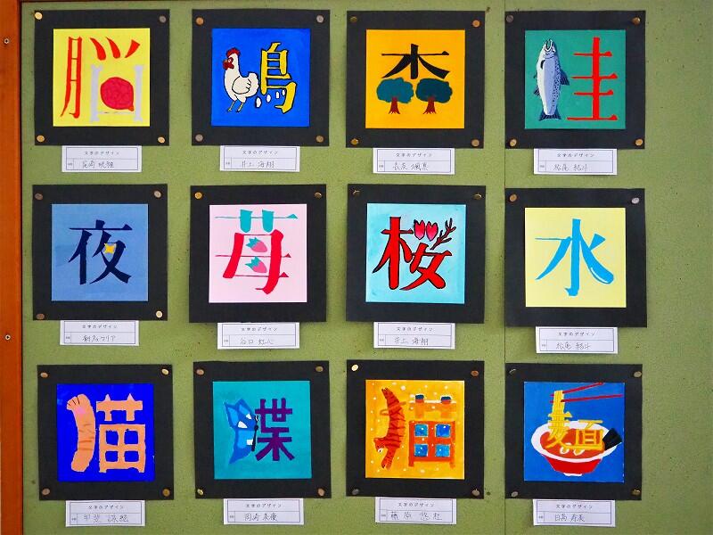 3年生は卒業作品は、「好きな言葉、グッと胸にくるフレーズ」を自分で選んで作製しています。それぞれの大切にしている言葉や、今の心境などを表している素敵な作品が完成しました。そして、作品の最後に押してある印鑑も卒業作品の一つ「篆刻」で、自分でデザインして彫ったものです。作品が引き締まります。