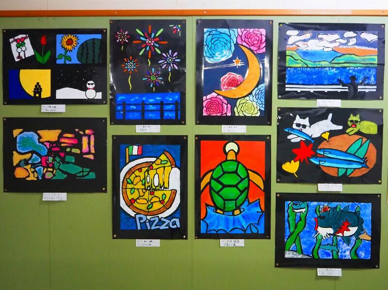 各学年の最後の美術作品は、校長室前の掲示板に展示してあります。ぜひ、ご来校の際にはじっくりご覧ください。