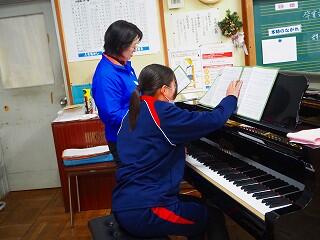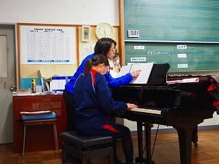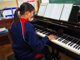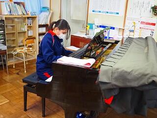 卒業式の時に、3年生の卒業の歌のピアノ伴奏を担当してくれる人が練習していました。