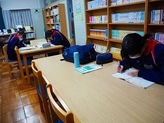 今日の放課後も、3年生が図書室や職員室前で自主学習に取り組んでいました。
