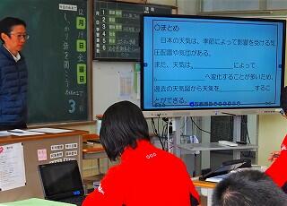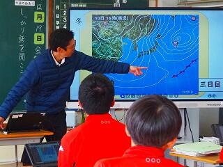 天気予報の映像を見て、これまで学習したことの復習と確認。