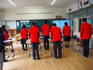 都於郡中の代々受け継がれてきている伝統の一つ、校門での一礼。毎日、朝夕、立ち止まって一人一人しっかり礼をしています。礼節を大切にする行動の習慣は、自分の気持ちにスイッチを入れたり、気持ちを切り替えたりする習慣にもなっているように思います。