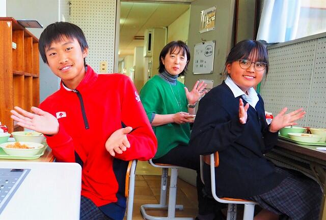 全校生徒は、今日の給食の時間に放送を聴きました。