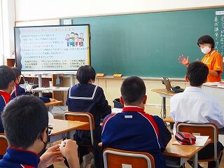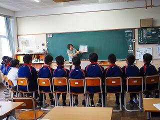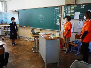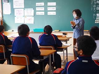 今回、1年生教室では、学級担任の先生が読み聞かせを担当されました。