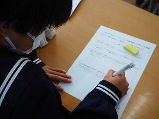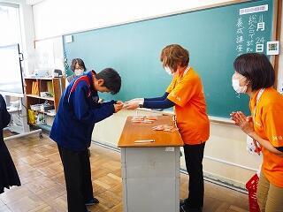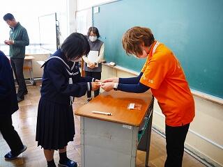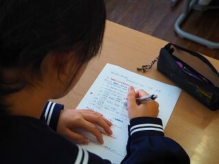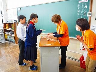 代表して学級委員長がお礼の言葉を述べ、それぞれが感想とお礼の気持ちを記入しました。