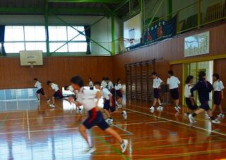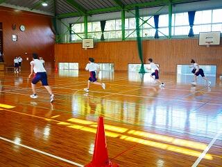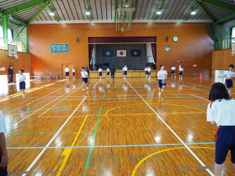 「今日は運動場が使えなかったので、体育館でシャトルランの練習でした。いつもとは違う練習でした。グループでつないでいくシャトルランなので、チームでカバーし合ったり、応援したりして、チーム力が上がりました。活気があり楽しい雰囲気の中に、どのチームも最後まであきらめずに頑張っていました。」