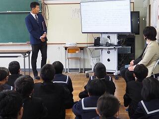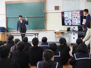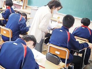 「今日の授業は、他の学校の先生方も参観されたので普段より緊張していたと思いますが、積極的に学習に取り組んでいました。参観された他の学校の先生方からも、『グループワークの時に、進行や記録の分担する時もとても積極的に取り組んでいて素晴らしいですね。』と、学習取組の様子をほめてくださっていました。日ごろのいろいろな学習での取組の積み重ねの賜物だと思います。これからも積極的に取り組んでいきましょう。」