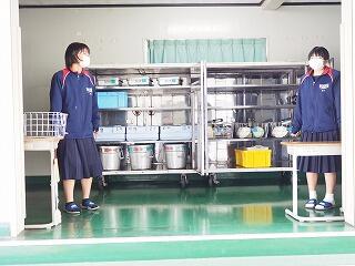 コンテナ室は、毎日、保体給食委員長、副委員長が、4校時終了後すぐにカギを取りに行き、給食当番が取りやすいように準備をしています。